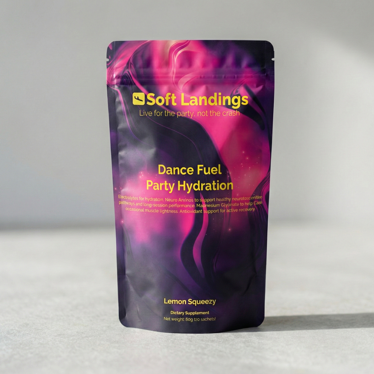 "Went to a huge music festival for NYE and pulled up amazing after the help of Soft Landings. I highly recommend this product to anyone that has to work or cares about their health and still likes to party! "